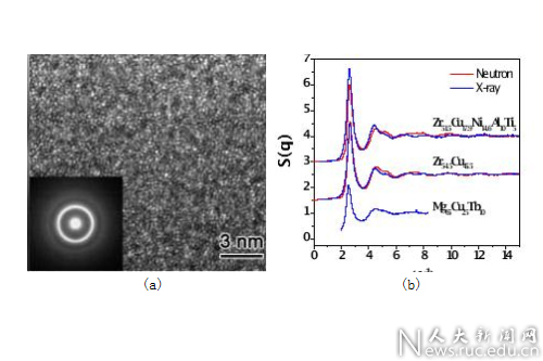 (b)不同金属玻璃体系的X射线和中子散射的结构因子