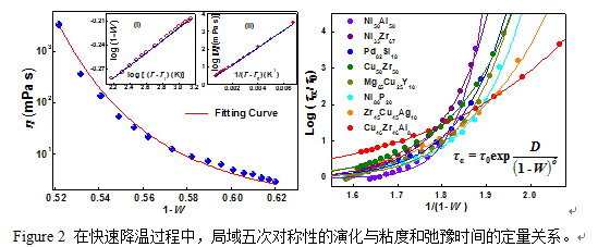 事实上,五次对称性在非晶无序体系中是普遍存在的,已有的研究表明五次对称性在胶体体系和颗粒物质的玻璃转变过程中扮演着重要的角色,并且影响着体系的宏观性质。同样,非晶合金也具有五次对称性,非晶形成的过程可以看做五次对称性与晶体对称性之间的竞争。因此,五次对称性可能在非晶合金及液体的结构性能关系中起着关键的作用。因此,是否可以找到一种定量描述非晶合金中五次对称性的方法,建立非晶无序体系的微观结构与宏观性能之间的关系呢?